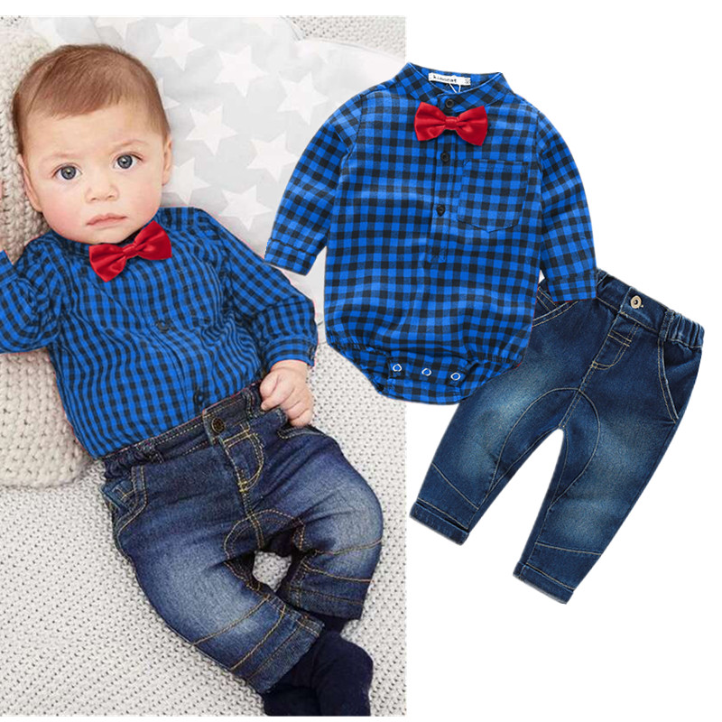 Ensemble bébé garçon 3 à 24 mois (jean, chemise, nœud papillon)