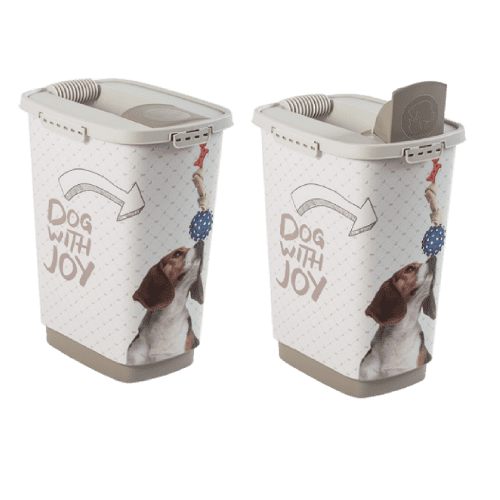 Conteneur à croquettes motif chien avec couvercle, bec verseur et pelle